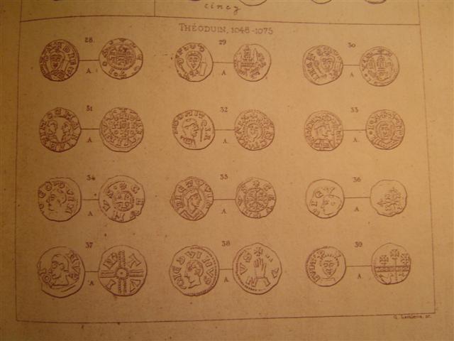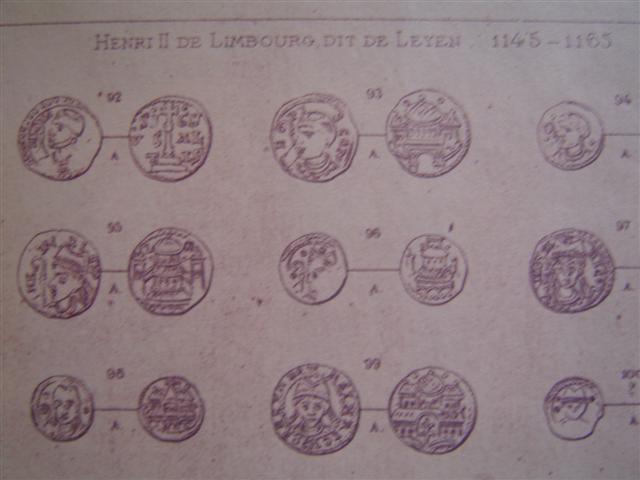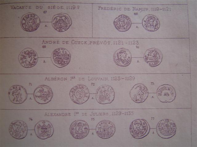 Sous Théoduin, si pas auparavant, l'émancipation était complète . A partir de cette époque, la numismatique liégeoise devient de plus en plus intéressante, à tel point que depuis le XIIe siècle , on peut dire qu'aucune autre ne lui est comparable en richesse et en originalité . Un denier d'André de Cuyck inaugure la petite série des monnaies prévôtales frappées pendant les vacances du siège . Sur une pièce de Henri II ( 1145-1164 ), se rencontre, pour la première fois, la croix haussée sur trois degrés, que bientôt après on trouve appelée perron . Vers la même époque apparaissent les copés, monnaies divisionnaires très rares , de la valeur d'une demi-obole .