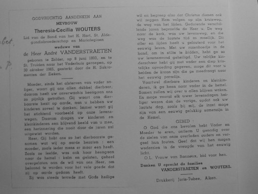 IVa 6 Maria Theresia Cecilia Wouters ° 1893 , gehuwd met Vanderstraeten A.