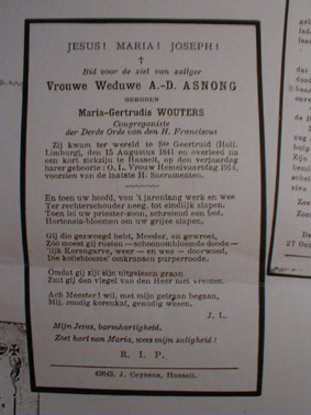 IIIe Marie Gertrudis Wouters ° 1841 en gehuwd met ene Asnong .