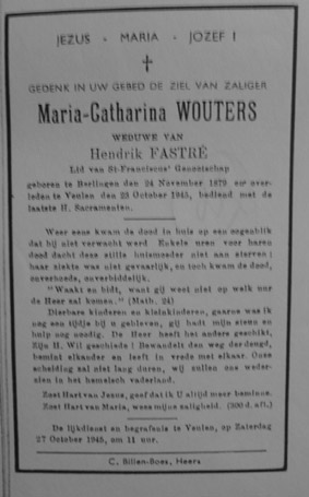 IVe 1 Maria Catherine Wouters ° Berlingen 1879, gehuwd met Hendrik Fastré