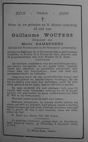 IVe 2 Guillaume Wouters ° Berlingen 1886, gehuwd Marie Ramackers
