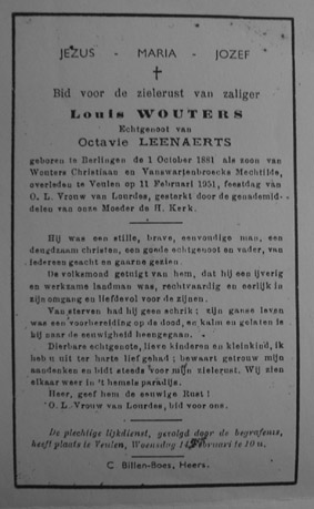 IVe 3 Louis Wouters ° Berlingen 1/10/1881 , gehuwd Octavie Lenaerts , waaruit 2 kinderen ( zie Vc )