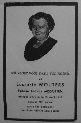 IVe 6 Eustasie Wouters , gehuwd Antoine Misotten en verhuisd naar Frankrijk