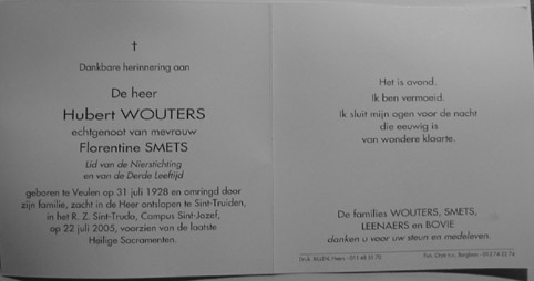 Vc 2 Hubert Wouters , gehuwd met Hubertine Smets .
