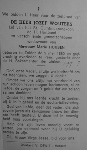 IVa 2 Jozef Wouters °2/5/1880 , gehuwd met Maria Houben